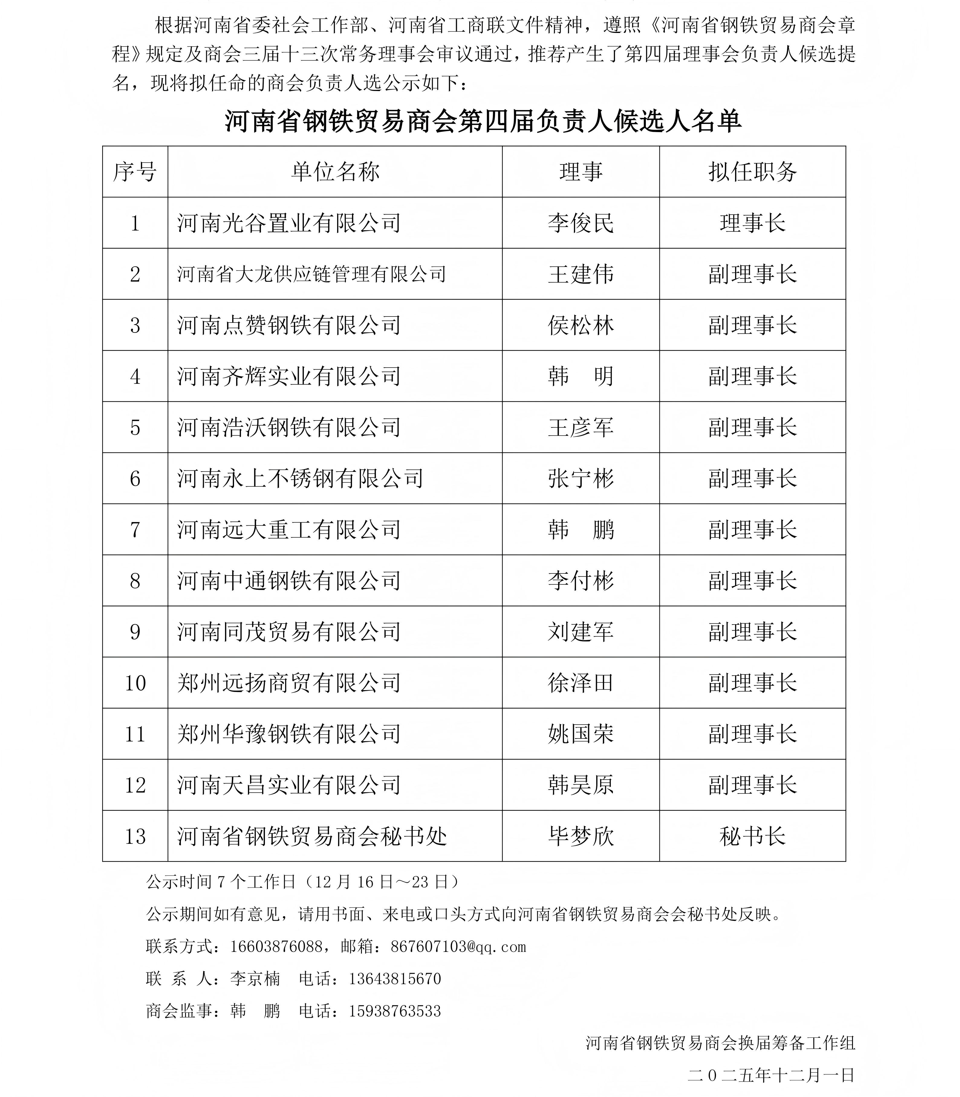 河南省钢铁贸易商会换届改选拟任负责人公示